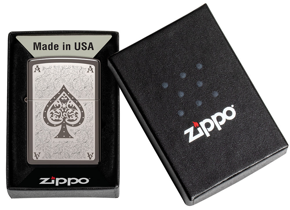 Das Ace Filigree beeindruckt mit seinem kunstvoll gestalteten Design. Mit einer eleganten Oberfläche und präziser Lasergravur ist es ein wahres Meisterwerk. Das Highlight dieses Zippo Feuerzeugs ist das filigrane Motiv eines Asses, das in die Vorderseite des Feuerzeugs graviert ist. Das Ass steht symbolisch für Glück, Stärke und Erfolg und verleiht dem Feuerzeug einen Hauch von Raffinesse und Individualität.