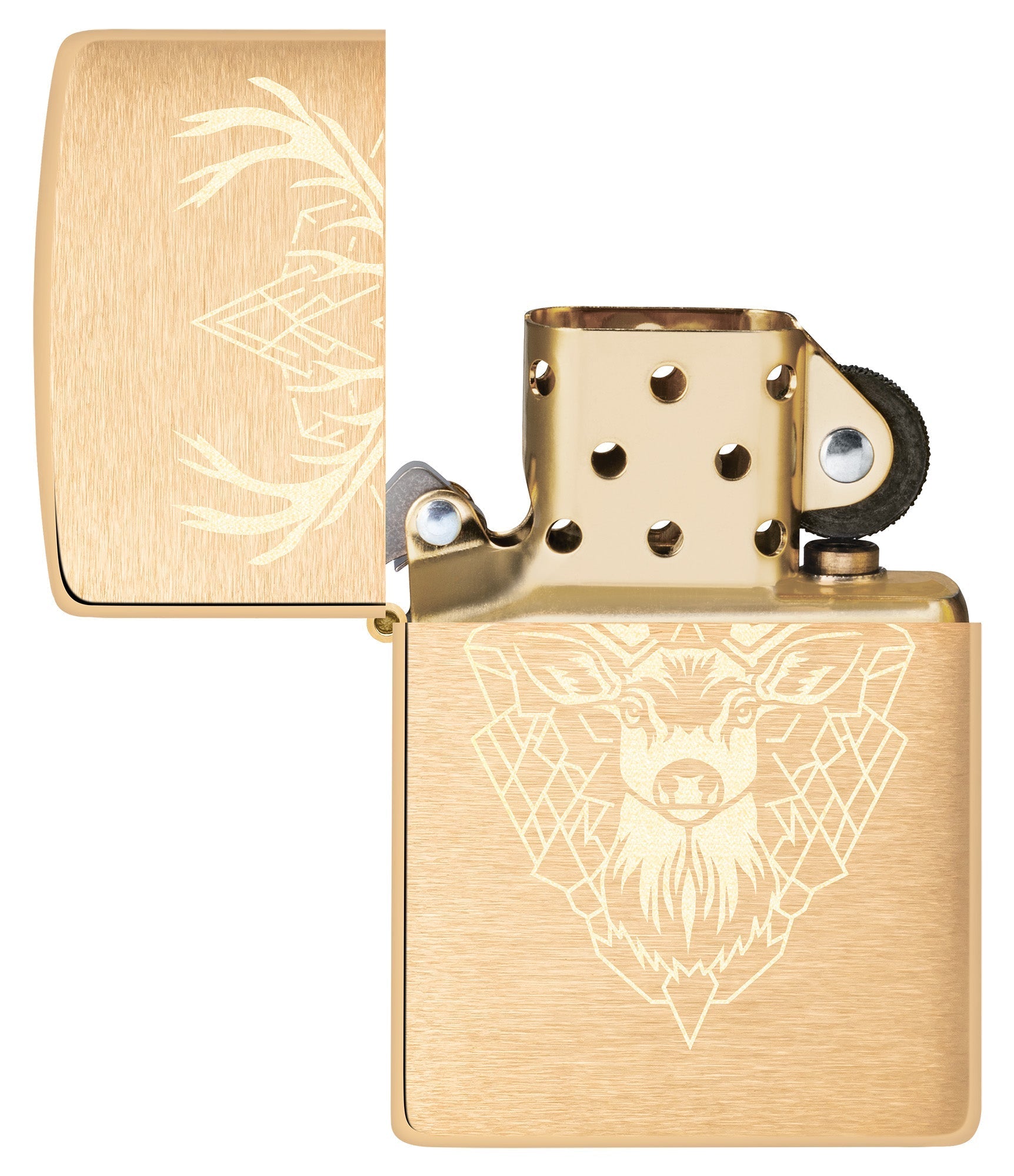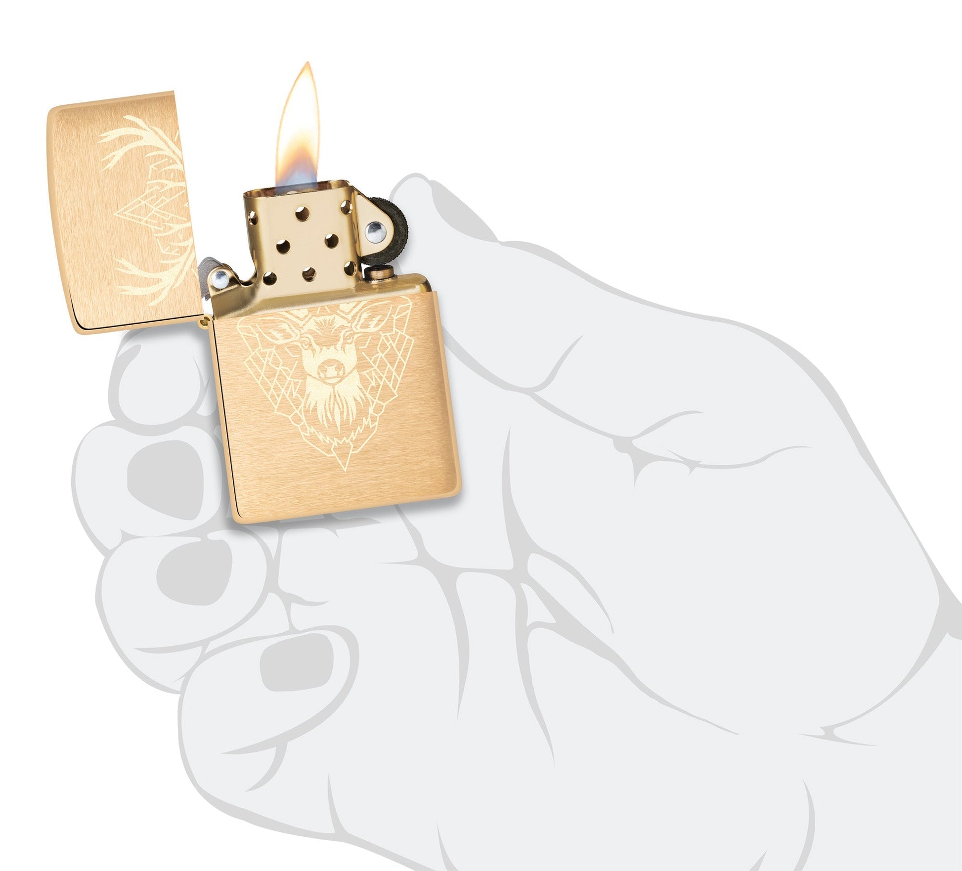 Zeigen Sie Ihre Liebe zur Natur mit diesem edlen Hirsch in aufwendiger Lasergravur auf einem klassischen Feuerzeug in gebürstetem Messing.