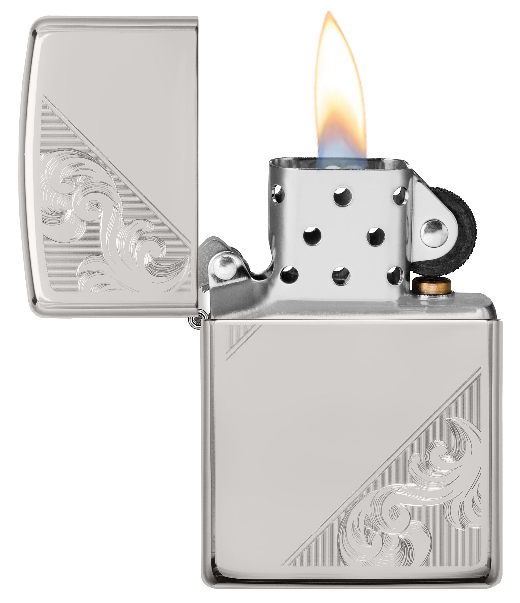 Die kunstvollen geschwungenen Linien und Verzierungen dieses diagonalen Filigran-Designs entstehen durch die klassische Auto-Engraving-Technik von Zippo. Sie verleihen dem Sterlingsilber-Feuerzeug mit High Polish Finish besondere Akzente und Tiefe. Klare und präzise Effekte werden durch dimensional gefüllte Gravurstriche erzielt, die das elegante Schmuckdesign zusätzlich hervorheben. Wird in einer Geschenkbox geliefert. Für optimale Leistung mit Zippo-Feuerzeugbenzin befüllen.