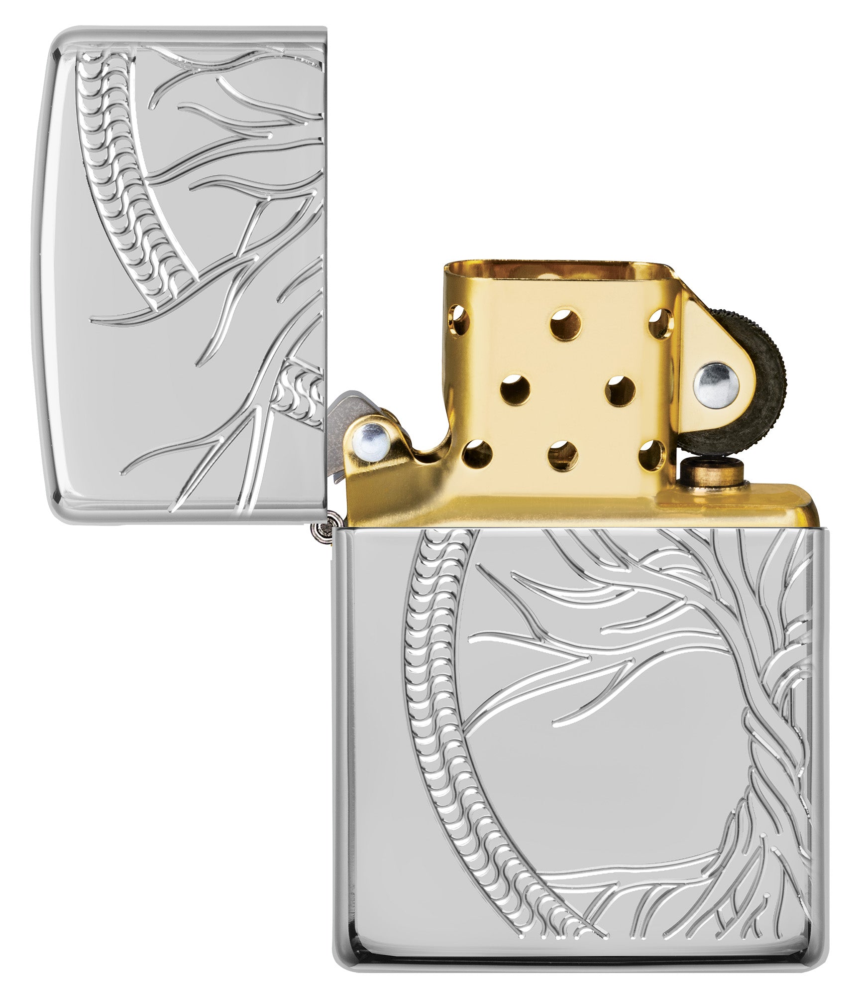 Der Baum des Lebens ist ein zeitlos beliebtes Motiv unter Zippo-Fans. Hier wird dieses uralte Symbol für persönliches Wachstum, Stärke und natürliche Schönheit mithilfe des MultiCut-Verfahrens von Zippo rund um alle Seiten dieses Armor® High Polish Sterling Silver Feuerzeugs eingraviert und verleiht ihm ein luxuriöses Aussehen sowie eine strukturierte Haptik. Wird in einer Geschenkbox geliefert. Für optimale Leistung mit Zippo-Feuerzeugbenzin befüllen.