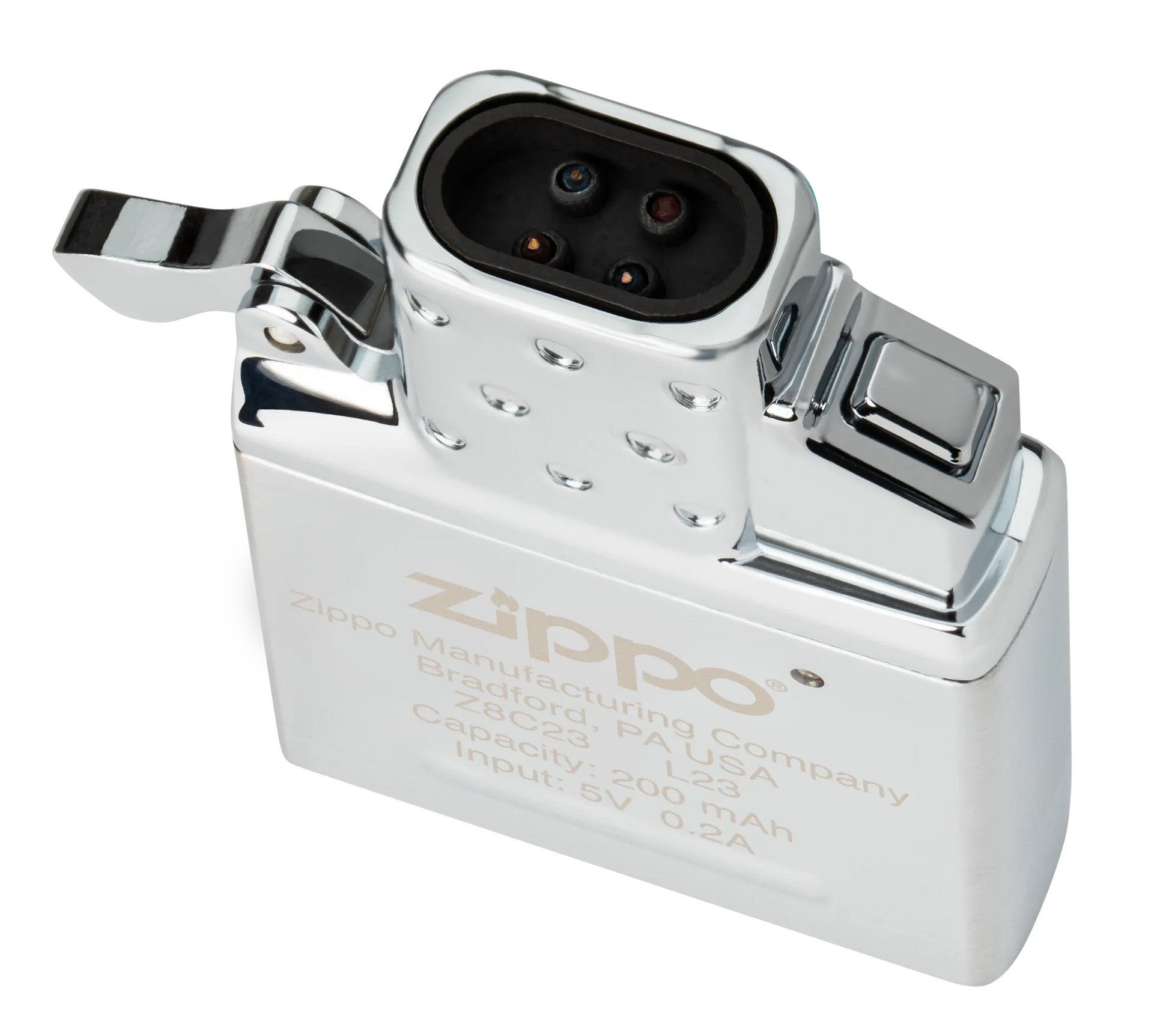 Geh bei der Individualisierung noch einen Schritt weiter und wähle eine andere Flammenart. Das Double Arc Rechargeable Lighter Insert bietet zwei leistungsstarke Plasmastrahlen, die auf Knopfdruck zünden. Diese flammenlose, windfeste Flammenquelle lässt sich mit dem mitgelieferten USB-C-Kabel einfach aufladen. Alle Zippo Feuerzeugeinsätze sind so konzipiert, dass sie perfekt in jedes klassische Zippo Feuerzeuggehäuse* (separat erhältlich) passen.